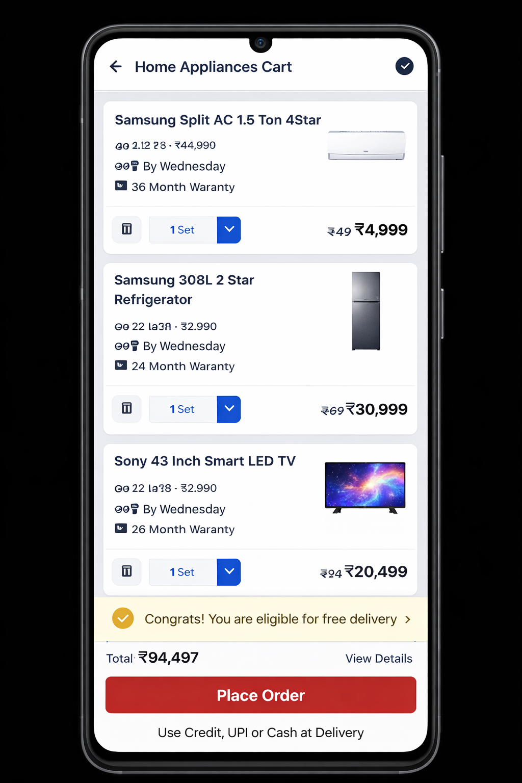 Shop over lakhs of products, set repeat orders, track deliveries, and manage credit—all from your phone.